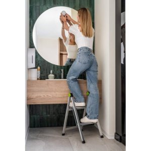 • Široký hliníkový profil – na rozdiel od typických domácich rebríkov, kde je profil otočený k užívateľovi užšou stranou, tento zdôrazňuje veľký hliníkový povrch, ktorý odráža súčasné modernistické interiéry založené na veľkých vertikálnych/horizontálnych deleniach