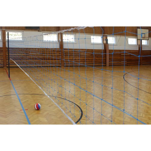 Volejbalová sieť School je vyrobená z HDPE (Polyetylén s vysokou hustotou) materiálu s rozmermi 9,50 x 1 m. Modrá volejbalová sieť je vhodná pre rekreačných hráčov, uplatní sa pri tréningu v školských telocvičniach. Sieť nie je vhodná na oficiálne organizované zápasy. Pletená nylonová sieť so štvorcovými okami a bielym pásom hore a dole o šírke 3 cm. Horným bielym pásom prechádza oceľové 3 mm lanko na uchytenie k volejbalovému stĺpiku. Prajeme veľa volejbalových smečov a plno zábavy. Parametre: rozmery: 9,50 x 1 m materiál: HDPE hmotnosť: 1 kg
