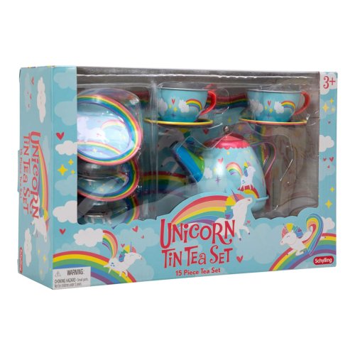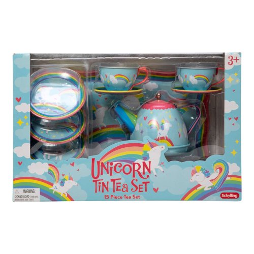 Je čas na čaj. Krásna 15 dielna čajová sada vyrobená z kovu, obsahuje 4 šálky s podšálkami, 4 dezertnými tanierikmi, kanvicu na čaj s pokrievkou a servírovaciu tácku, všetko v dizajne jednorožca. Rozmer servírovacej tácky je 24x16 cm. Kreativita stúpa, keď Vaše ratolesti hostí kamarátov, bábiky a plyšové hračky s najsladšou čajovou sadou všetkých čias. Vhodné pre malých hostiteľov a hostiteľky vo veku od 3 rokov. Hlavné vlastnosti: 15dielna čajová sada ideálna pre predstierané čajové večierky dizajn s motívom jednorožca