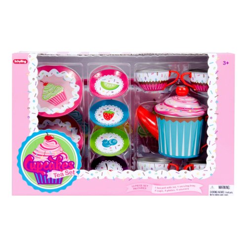 Je čas na čaj. Krásna 15 dielna čajová sada vyrobená z kovu, obsahuje 4 šálky s podšálkami, 4 dezertnými tanierikmi, kanvicu na čaj s pokrievkou a servírovaciu tácku, všetko v dizajne zdobených muffinov. Rozmer servírovacej tácky je 24x16 cm. Kreativita stúpa, keď Vaše ratolesti hostia kamarátov, bábiky a plyšové hračky s najsladšou čajovou sadou všetkých čias. Vhodné pre malých hostiteľov a hostiteľky vo veku od 3 rokov. Hlavné vlastnosti: 15dielna čajová sadaideálna pre predstierané čajové večierkydizajn s motívom muffinov