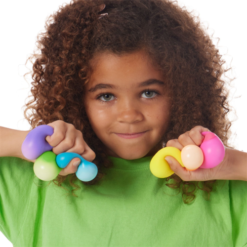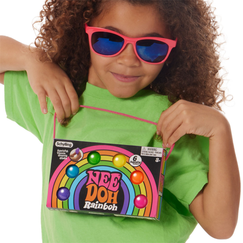 6 ks antistresových loptičiek vo farbách dúhy. Schylling Teenie NeeDoh je antistresová loptička a neposedná hračka, ktorá deti zabaví na celé hodiny. Loptička je mikro verzia loptičky Classic NeeDoh, ktorá sa ľahko zmestí do dlaní malých, detských ručičiek . Nee Doh sa nedávno preslávil na TikTok s viac ako 150 miliónmi zhliadnutí a teraz je medzi deťmi veľmi obľúbený. Loptičky sú vyplnené super mäkkou zmesou, vďaka čomu sú dokonalou hračkou. Možno ich stláčať, ťahať, rozbíjať a vždy sa vráti do pôvodného tvaru. Ideálne pre zábavu na cestách alebo ako prostriedok proti úzkosti, pomáha aj deťom sústrediť sa a udržať pozornosť. Vhodný aj ako dá rek. Spĺňa všetky aktuálne európske bezpečnostné normy. Vonkajší materiál produktov NeeDoh je termoplastická guma, vnútorná náplň je polyvinylalkohol, oba materiály sú netoxické. Náplňou je PVA, ktorý sa používa aj ako poťah vo farmaceutických prípravkoch a doplnkoch stravy. Hlavné vlastnosti: balenie 6 ks vhodný pre osoby s ADD, ADHD, OCD, autizmom a úzkosťou antistresová loptička i hračka ideálna na cesty podporuje sústredenosť a pozornosť vyrobená z netoxického materiálu
