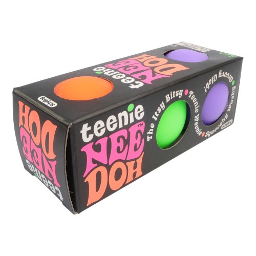 Balenie obsahuje 3 loptičky o rôznych, náhodne vybraných farbách. Zasielame náhodne. Schylling Teenie NeeDoh je antistresová loptička a neposedná hračka, ktorá deti zabaví na celé hodiny. Loptička je mikro verzia loptičky Classic NeeDoh, ktorá sa ľahko zmestí do dlaní malých, detských ručičiek. Nee Doh sa nedávno preslávil na TikTok s viac ako 150 miliónmi zhliadnutí a teraz je medzi deťmi veľmi obľúbený. Loptičky sú vyplnené super mäkkou zmesou, vďaka čomu sú dokonalou hračkou. Možno ich stláčať, ťahať, rozbíjať a vždy sa vráti do pôvodného tvaru. Ideálne pre zábavu na cestách alebo ako prostriedok proti úzkosti, pomáha aj deťom sústrediť sa a udržať pozornosť. Vhodný tiež ako dá rek.Rozmer balenia: 4,3 x 10 x 4 cmPriemer loptičky: 4,3 cmVek: 3+3 ks v balení