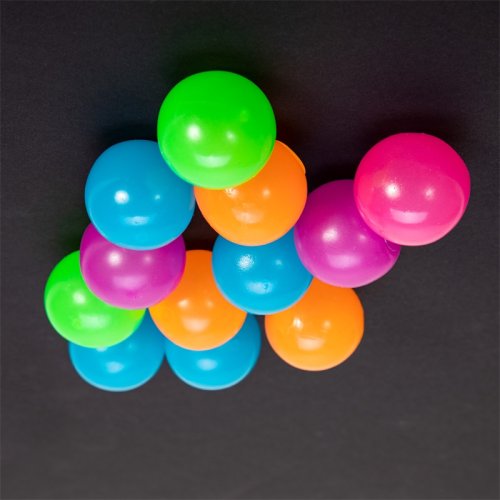 Užite si vzduchom naplnenú krčivú zábavu s NeeDoh Stickums. Stickums je balenie 12 loptičiek v piatich farbách svietiacich v tme, sú naplnené vzduchom. Tieto jedinečné antistresové loptičky majú lepkavý povrch, čo znamená, že ich možno nielen stláčať, ale tiež ich pre zábavu hádzať na steny, okná, stropy a akýkoľvek rovný povrch. NeeDoh Stickums je skvelá hračka, obzvlášť vhodná pre deti s ADD, ADHD, OCD, autizmom a úzkosťou. Pomáha deťom sústrediť sa a venovať pozornosť danej hračke. Guličky sú vyrobené z netoxických materiálov. Vonkajší materiál produktov NeeDoh je termoplastická guma, vnútorná náplň je polyvinylalkohol, oba materiály sú netoxické. Náplňou je PVA, ktorý sa používa aj ako poťah vo farmaceutických prípravkoch a doplnkoch stravy. Hlavné vlastnosti: antistresová loptička aj hračka podporuje sústredenosť a pozornosť 12 guličiek v každom balení ideálne na cesty