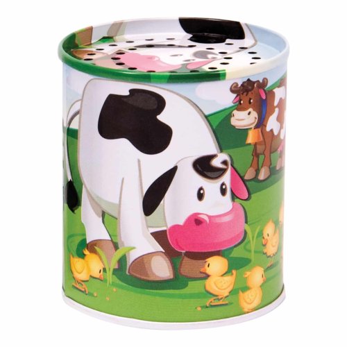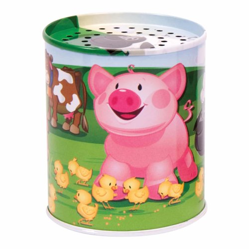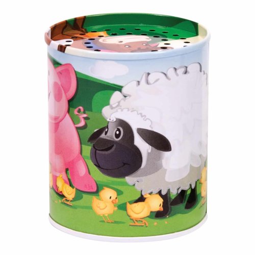 Naša plechovka so zvukom k Vám prináša farmu domov. Táto klasická plechová hračka je obľúbená po celé roky a pomáha deťom rozvíjať rozpoznávanie zvukov, keď ju priraďujú k správnemu zvieraťu. Kravičky, ovečky, kuriatka sa pasú na poliach, prasiatka sa vyhrievajú v bahne a všetci sú veľkí kamaráti. Stačí len plechovku otočiť hore dnom, a budete počuť ich zvuk. Dizajny a zvuky sa môžu líšiť. Otáčanie plechovky tiež pomáha rozvíjať koordináciu rúk a očí. Sledujte, ako sa Vaše dieťa teší z počúvania zábavných zvukov. Hlavné vlastnosti: podporuje predstavivosťpomáha rozpoznávať zvukypomáha rozvíjať koordináciu rúk a očíplechová hračka v retro štýle