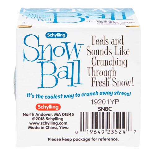Zbavte sa stresu s antistresovou loptičkou Schylling's Snow Ball Crunch, ktorý deti zabaví na celé hodiny. Chrume, ako by ste sa prechádzali po zamrznutom snehu. Vyznačuje sa bielo-modrým bodkovaným vzhľadom – rovnako ako sneh. Loptička je vyplnená super mäkkou zmesou, vďaka čomu je dokonalou hračkou. Je možné ho stláčať, ťahať, rozbíjať a vždy sa vráti do pôvodného tvaru. Ideálne pre zábavu na cestách alebo ako prostriedok proti úzkosti, pomáha aj deťom sústrediť sa a udržať pozornosť. Ideálne aj ako dá rek. Hlavné vlastnosti: antistresová chrumkavá loptička aj hračka podporuje sústredenosť a pozornosť ideálne na cesty