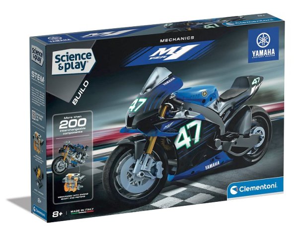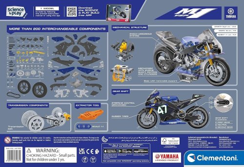Stavebnica, ktorú si deti užijú pri stavbe slávnej Yamahy M1, niekoľkonásobného víťaza pretekov na okruhu Moto GP. Obsahuje všetky diely potrebné na vytvorenie Yamahy M1 s funkčnou 3-rýchlostnou prevodovkou, predným odpružením a systémom reťazového pohonu. Aplikácia „Science & Play Build“ integruje herný zážitok tým, že poskytuje interaktívne 3D animácie ako pomôcku pri zostavovaní. Štýlové detaily s dielmi karosérie, ktoré sú verné originálu. Ilustrovaný návod vysvetľuje, ako zostaviť tento model krok za krokom. Rozmer balenia: 45,1x31,1x7 cm. Vek 8+