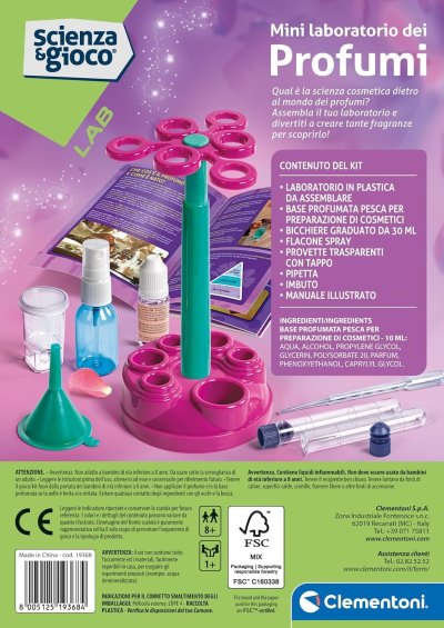Malé vedecké laboratórium z radu Science&Play na experimentovanie a vytváranie parfumov. praktický stojan pre umiestnenie skúmaviek pri experimentoch základom je broskyňová vôňa vhodná pre deti i dospelých podporuje záujem o vedu a prírodné odbory obrázková príručka Obsah sady: stojan, broskyňový základ parfumu do kozmetických prípravkov, odmeriavacia nádobka 30ml, flakón, priehľadné skúmavky lievik, návod s popismi a obrázkami (CZ, SK, HU, PL) Upozornenie: Stojan je potrebné zložiť. Súprava neobsahuje všetko príslušenstvo a materiály potrebné na vykonávanie všetkých spomínaných experimentov (napr. demineralizovanú vodu)