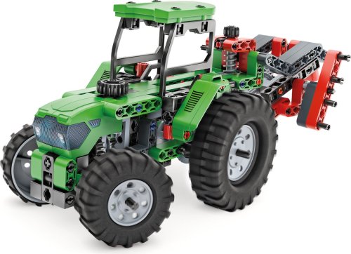 Vedecká sada pre zábavu pri objavovaní vedy s prevádzkou poľnohospodárskych strojov. Stavebnica obsahuje viac ako 240 dielikov, z ktorých je možné vyrobiť a zostaviť 10 rôznych dynamických modelov. Ilustrovaný manuál vysvetľuje, ako zostaviť modely, a obsahuje niektoré poznatky o princípoch mechaniky a inžinierstva. Veľa špeciálnych dielov, ako je diferenciál, ozubené kolesá, kardanový kĺb a mnoho ďalších, umožňuje experimentovať s vozidlami a pochopiť, ako fungujú. Aplikácia „Science & Play Build“ integruje herný zážitok tým, že poskytuje montážnu pomôcku pre všetky modely vďaka interaktívnym 3D animáciám. Jazková mutácia CZ, SK, HU. Rozmer balenia: 27,8x39,6x6 cm. Vek 8+