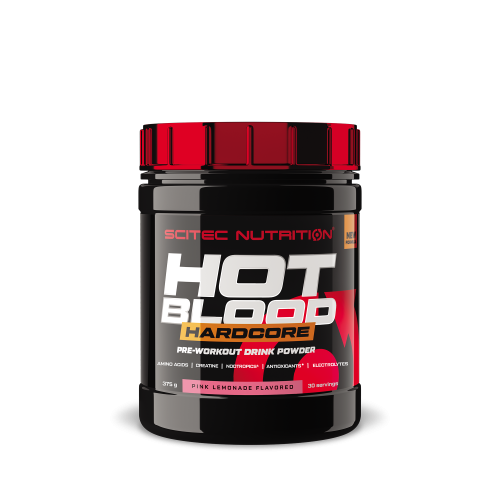! Obsahuje kofeín, nie je vhodné pre deti a tehotné ženy. Denná dávka (25 g) obsahuje 300 mg kofeínu. Produkt nie je vhodný pre osoby trpiace precitlivenosťou na kofeín. Nová generácia obľúbeného predtréningového suplementu s vylepšeným zložením! Scitec Hot Blood Hardcore je komplexný predtréningový suplement, ktorý sa vyznačuje vysokým obsahom kofeínu, kreatínu, aminokyselín, nootropík, antioxidantov a elektrolytov. Obsahuje jednu z najpreskúmanejších foriem kreatínu - kreatín monohydrát, pri ktorom je dokázané, že zvyšuje fyzickú výkonnosť počas krátkodobých po sebe nasledujúcich dávok veľmi intenzívneho cvičenia. Pozitívne účinky sa prejavia už pri dennej dávke 3 g kreatínu. Pridaný vitamín B6 a niacín prispievajú k správnemu fungovaniu nervového systému. Zinok prispieva k normálnym kognitívnym funkciám. Vitamín C a E prispievajú k ochrane buniek pred oxidatívnym stresom. Folát, vitamín B12 a vitamín A prispievajú k správnemu fungovaniu imunitného systému. Chróm prispieva k normálnemu metabolizmu makroživín. Biotín prispieva k správnej funkcii metabolizmu pre tvorbu energie. Odporúčané dávkovanie: