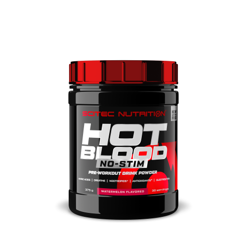 HOT BLOOD NO-STIM je ochutený predtréningový nápoj bez stimulantov, s cukrom a so sladidlami. Ideálne pre tých, ktorí trpia neznášanlivosťou kofeínu. No-Stim podporuje vaše telo počas fyzicky náročných alebo vysoko intenzívnych tréningov, pretože je vedecky dokázané, že 3 g kreatínu v produkte zvyšujú výkon pri sekvenčných, krátkotrvajúcich a vysoko intenzívnych cvičeniach, ako je silový tréning alebo intervalové kardio! Vitamín B6 a niacín prispievajú k správnemu fungovaniu nervovej sústavy*. Zinok prispieva k správnej kognitívnej funkcii*. Vitamín C a vitamín E prispievajú k ochrane buniek pred oxidačným stresom*. Folát, vitamín B12 a vitamín A prispievajú k normálnej funkcii imunitného systému*. Chróm prispieva k správnej látkovej premene makronutrientov*. Biotín prispieva k správnej látkovej premene dôležitej pre tvorbu energie*.