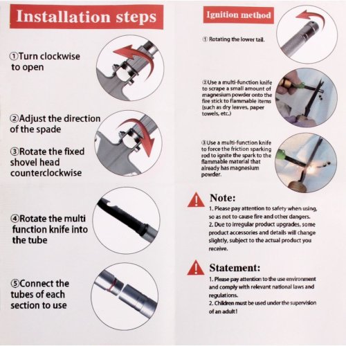 Či už sa chystáte na výlet do prírody, dlhšie kempovanie v divočine, letný detský tábor, alebo napríklad na ryby, skvele vám poslúži multifunkčná skladacia lopatka Merco Scout Extra. Lopatka je vyrobená z nerezovej ocele, takže je veľmi odolná, zároveň však pri rozložení zaberie minimum miesta a ľahko ju zabalíte aj do menšieho batohu. Jej hmotnosť vrátane obalu je iba 990 g. Jednotlivé funkcie vás prekvapia a nadchnú. Okrem klasickej funkcie lopatky alebo rýľa s maximálnou dĺžkou rukoväte 68 cm, môžete lopatku povolením závitu úchytu a pootočením jej hlavy o 90 stupňov využiť ako motyčku, vďaka vrúbkom na jednej strane hlavy a zbrúsenej hrane na druhej, vám lopatka poslúži ako pílka alebo sekáčik. Výrez v hlave lopatky slúži ako otvárač na fľaše alebo konzervy. Rukoväť sa skladá zo 4 častí, ktoré do seba ľahko a pevne zaskrutkujete. K samostatnému jednému dielu rukoväte sa naskrutkuje multifunkčný nôž s pílkou a otváračom. Pri nepoužívaní noža, kvôli bezpečnosti, ho jednoducho skryjete zaskrutkovaním do druhej časti rukoväte lopatky. Koncovka rukoväte je opatrená špicatým oceľovým hrotom, ktorý využijete napríklad na rozbitie skla, ľadu, alebo iných tenších a krehkých materiálov. Po vyskrutkovaní koncovky nájdete vo vnútri nadstavec s píšťalkou pre prípadné privolanie pomoci a krátkou tyčkou s malým množstvom prášku magnézia. Pokiaľ túto tyčku budete trieť o pílku noža, môžete núdzovo rozrobiť oheň vďaka zapáleným iskrám. Súčasťou balenia je polyesterový kryt na hlavu lopatky a puzdro z polyesteru na 2 časti rukoväte a nôž. So skladacou lopatkou Merco Scout Extra sa žiadnych nástrah pobytu v prírode obávať nemusíte. Funkcia lopatky Merco Scout Extra: - lopatka alebo rýľ s nastaviteľnou dĺžkou rukoväte - pílka - sekáčik - motyčka - otvárač - nôž s pílkou a otváračom - píšťalka - kladivko s hrotom na rozbitie krehkých materiálov - tyčinka-kresadlo na rozdelenie - 1 x hlava lopatky so skrutkovacou koncovkou (rozmer hlavy: dĺžka x šírka: 17 x 13 cm). - 4 x skrutkovací diel rukoväte (dĺžka 1 dielu: 18 cm, priemer: 27 mm). - Maximálna dĺžka zloženej rukoväte: 68 cm - 1 x skrutkovací nástavec s multifunkčným nožom. - 1 x skrutkovacia koncovka s hrotom. - 1 x píšťalka. - 1 x tyčinka s práškom magnézia (dĺžka 32 mm), slúžiaca ako kresadlo na rozloženie ohňa. - 1 x puzdro na hlavu lopatky. - 1 x puzdro na 2 časti rukoväte a nôž (šírka x dĺžka: 13 x 23 cm). - Materiál: nerezová oceľ, polyester. - Celková hmotnosť všetkých dielov lopatky vrátane puzdier: 990 g - Rozmer balenia: 26 x 15 x 5 cm