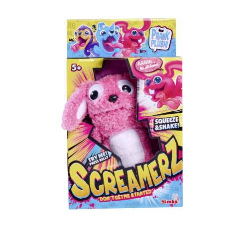 ScreamerZ, zábavný plyšák s bláznivými očami a smiešnymi zvukovými efektmi. Ľahko mu stlač bruško a vydá roztomilý zvuk, stlač viac a začne kričať, stlač ešte viac a zatrep s ním a on bude roztrasene jačať. Veľkosť 30 cm. Farba ružová.