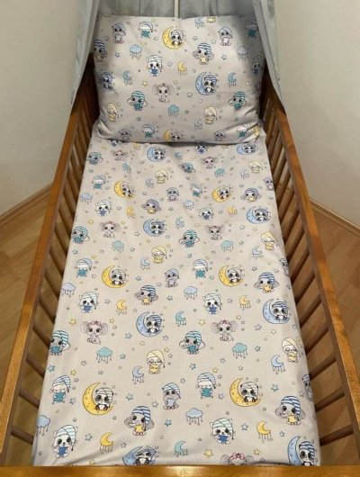 SDS Obliečky do postieľky Usínáčci 90/130, 45/60 Detské obliečky do postieľky, vyrobené zo 100% Bavlny, zapínanie na zips, pred prvým použitím odporúčame vyprať na 40 ° C, ušité v SR, možno objednať aj iný rozmer, dodacia doba cca 14 dní Materiál: 100% Bavlna Rozmer: 1x 90/130, 1x 45/60 cm