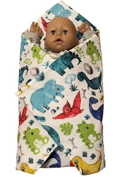SDS Rýchlozavinovačka pre bábiky Dino Rýchlozavinovačka pre bábiky vyrobená zo 100% Bavlny, výplň zo 100% Polyesteru je pevne všitá vo vnútri, zapínanie na suchý zips, možno prať na 30 ° C, ušité v SR, možno objednať aj iný rozmer, dodacia doba dní Materiál: 100% Bavlna, výplň: 100% Polyester Rozmer: 1x 60x60 cm