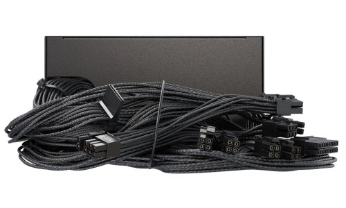 Zdroj ponúka 24pin ATX konektor pre základnú dosku, 8/4pin CPU konektory pre napájanie procesora, 8/6pin PCIe konektory pre staršie grafické karty, 1× 12V-2×6 konektor pre najnovšie GPU a SATA/Molex konektory pre úložisko a príslušenstvo.
