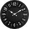 Nástenné hodiny Napájanie z batérie Rozmery 330 MM Puzdro v tvare kruhu Plastové puzdro ČIERNA farba púzdra Ručičkový ciferník Čierna farba ciferníka Ciferník s arabskými číslami