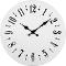Nástenné hodiny Napájanie z batérie Rozmery 330 MM Puzdro v tvare kruhu Plastové puzdro Biela farba púzdra Ručičkový ciferník Biela farba ciferníka Ciferník s arabskými číslami