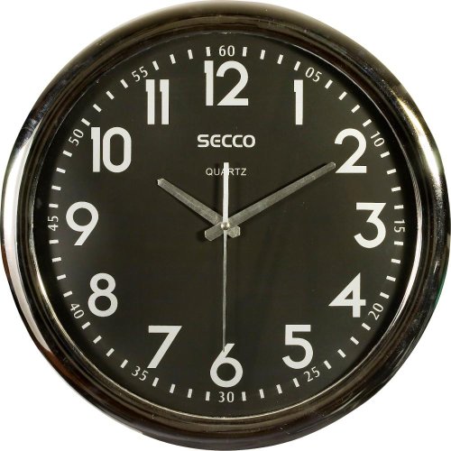 Nástenné hodiny Napájanie z batérie Rozmery 395 MM Puzdro v tvare kruhu Plastové puzdro ČIERNA farba púzdra Ručičkový ciferník Čierna farba ciferníka Ciferník s arabskými číslami