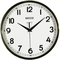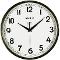 Nástenné hodiny Napájanie z batérie Rozmery 250 MM Puzdro v tvare kruhu Plastové puzdro ČIERNA farba púzdra Ručičkový ciferník Biela farba ciferníka Ciferník s arabskými číslami