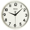 Nástenné hodiny Napájanie z batérie Rozmery 250 MM Puzdro v tvare kruhu Plastové puzdro Biela farba púzdra Ručičkový ciferník Biela farba ciferníka Ciferník s arabskými číslami