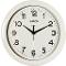 Nástenné hodiny Napájanie z batérie Rozmery 280 MM Puzdro v tvare kruhu Plastové puzdro Biela farba púzdra Ručičkový ciferník Biela farba ciferníka Ciferník s arabskými číslami