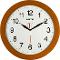 Nástenné hodiny Napájanie z batérie Rozmery 300 MM Puzdro v tvare kruhu Plastové puzdro Hnedá farba puzdra Ručičkový ciferník Biela farba ciferníka Ciferník s arabskými číslami