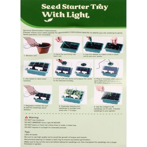 Radi zahradničíte a pestujete si vlastné rastlinky zo semienok? Potom je pre vás ideálne miniparenisko Seedling Pot 12 Light. Tento malý skleníček sa používa na predpestovanie sadeníc, rezkovanie rastlín a klíčenie semienok. Seedling Pot 12 Light je vyrobený z PET plastu a skladá sa zo zelenej podmisky, priehľadnej vložky na sadenice s otvormi na odtok vody, priehľadného veka, na ktorom sa dá nastaviť prúdenie vzduchu, LED osvetlenie, 10 zápichov pre označenie sadeníc a plastového mini záhradníckeho náčinia . Každé miniparenisko má 12 otvorov pre sadenice a celý set Seedling Pot 12 obsahuje 5 kusov miniparenísk. Jedno miniparenisko má rozmery 18,5 x 16 x 14,5 cm (ŠxVxD) a veľkou výhodou oproti konkurenčným miniparníkom je dostatočne vysoké veko. Návod: 1) Navlhčite zeminu, najlepšie rozprašovačom. 2) Plastovou mini lopatkou naplňte otvormi zeminou. 3) Mini sádzacím kolíkom vytvorte jamky pre semienka alebo rezne. Semienka umiestnite do jamiek. 4) Môžete použiť biele zápichy na označenie rastliniek. 5) Parenisko priklopte priehľadným vekom a zeleným kolieskom nastavte prúdenie vzduchu (mikroklímu). 6) Do zeleného kolieska zapojte USB kábel (a ten potom s adaptérom do zásuvky - adaptér nie je súčasťou balenia), tým spustíte svetlo. 7) Pravidelne vlhčite zeminu, môžete pridať aj hnojivo. 8) Parenisko umiestnite na svetlé a teplé miesto. 9) Na vybratie sadeníc môžete využiť druhý priložený mini nástroj. Tipy: Označte si všetky semienka. Použite kvalitnú zeminu, môžete sa tak vyhnúť prípadným škodcom a plesniveniu rastlín. Odporúčame do každého kvetináča zasadiť 2-3 semienka, aby ste zvýšili šancu na úspešné pestovanie. Pred vybratím sadeníc z kvetináčov nechajte zeminu mierne preschnúť, pôjdu potom lepšie vybrať. Obsah balenia: 5 ks zelených podmisok 5 ks priehľadných vložiek s kvetináčmi (1 kvetináč má rozmer 3,8 x 3,8 x 5,5 cm) 5 ks priehľadných viečok 5 ks koliesok s LED svetlom pre úpravu mikroklímy v parenisku 10 ks štítkov na označenie rastlín 2 ks mini záhradného náčin 1 ks USB kábla s 5 koncovkami Materiál: PET plast