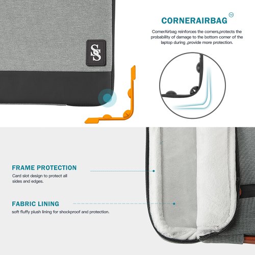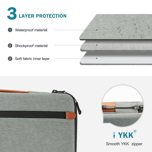 Taška je vyrobená z troch vrstiev textílie - vonkajší vodeodolný materiál, ktorý odolá cákancom vody, strednej nárazu vzdorný materiál a vnútorný mäkký materiál. Vďaka týmto trom textíliám máte istotu, že je vaše zariadenie v bezpečí za všetkých okolností. Rohy tašky sú navyše opatrené ochranou rohov zariadenia.