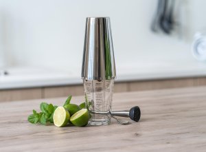 Nerezový šejker na koktaily AKCENT je vhodný na prípravu miešaných alkoholických i nealkoholických nápojov. Objem: nerezový diel 830 ml, sklenený diel: 450 ml. Výška: nerezový diel 16 cm, sklenený diel: 14,5 cm.