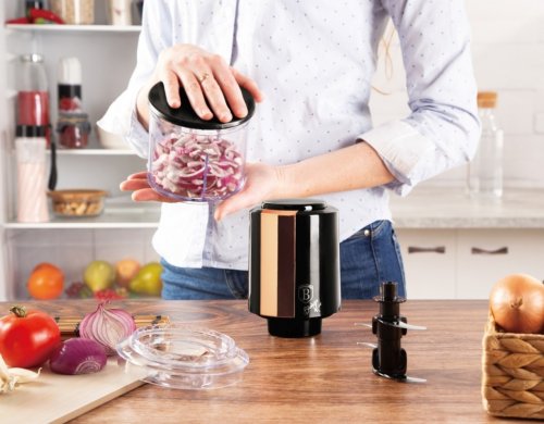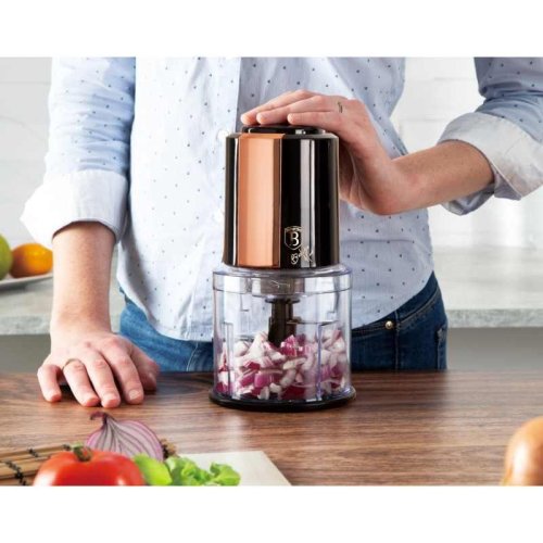 Sekáčik na potraviny BerlingerHaus je praktické a elegantné príslušenstvo do kuchyne. Šetrí veľa námahy a tiež času, využijete ho na kosenie, mixovanie, mletie aj drvenie. Poradí si so všetkými druhmi zeleniny a ovocia, orechy, čokoládou, bylinkami aj s mäsom. V lete Vám tento šikovný pomocník nadrví ľadovú triešť priamo do Vašich koktailov.