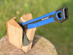 Sekera so sklolaminátovou násadou tlmiacou nárazy. Sekera je v praxi používaná predovšetkým na kosenie či tesanie do dreva. Dĺžka 45 cm.