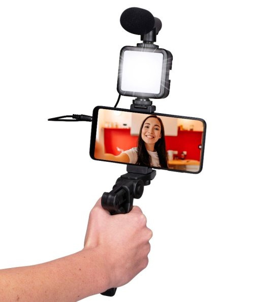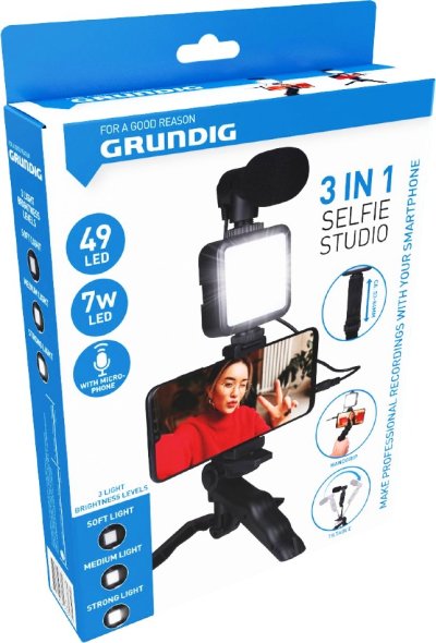 Zvýšte svoju tvorbu obsahu so statívom Grundig pre smartfón s integrovanou lampou a mikrofónom. Tento statív je ideálny pre tvorcov obsahu, vloggerov a živých streamerov a obsahuje 49 samostatných LED svetiel, ktoré osvetlia vaše zábery aj za zlých svetelných podmienok. S výkonom 7W ponúka statív pre mobilný telefón nastaviteľné osvetlenie medzi 6000K a 6500K a vytvára dokonalú atmosféru pre vaše nahrávky. Zlepšite kvalitu zvuku pomocou externého mikrofónu a zachyťte čistý a presný zvuk. Tento statív je vhodný pre rôzne veľkosti smartfónov od šírky 53 mm do 84 mm, poskytuje stabilitu a všestrannosť. Naklápací dizajn a kompatibilita so stolným aj ručným používaním z neho robí všestrannú voľbu na zachytenie obsahu zo správneho uhla. Či už nahrávate make-up tutoriály, vytvárate denné vlogy alebo sa zúčastňujete tímových schôdzok, statív pre chytré telefóny Grundig s lampou a mikrofónom podporí vašu kreativitu. Technické údaje Statív na mobilný telefón Grundig s lampou a mikrofónom Značka: GrundigMateri 5VDCBatérie (mimo): 3 x AAA/LR03Pripojovací kábel A: 3,5mm jack konektorPripojovací kábel B: 3,5mm jack konektorDĺžka kábla: 50 cmPočet LED: 49Výkon: 7WFarebná teplota (CT): 6000-6500KNastaviteľný svetlá: 67 x 67 x 30 mmMinimálna veľkosť telefónu: 53 mmMaximálna veľkosť telefónu: 84 mmModel statívu na stôlFunkcia nakláňaniaPripojenie statívu: 1/4" skrutkaObsahuje mikrofón