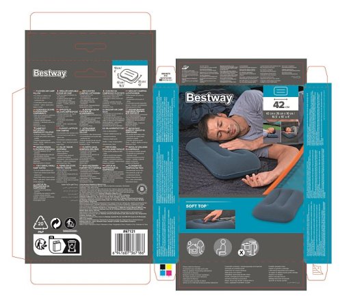 Bestway nafukovací vankúš s príjemným semišovým povrchom môžete využiť nielen na cestách ako vankúš, ale aj ako podložku na sedenie. Bezpečnostný ventil. Vyrobené z kvalitného a odolného vinylu. Robustná konštrukcia. Obsahuje: 1 nafukovací vankúš, 1 záplatu na opravu. 2 farebné prevedenie. Assort je náhodný mix modelov. Výber nie je možné ovplyvniť. Rozmery vankúša: 48 x 32 cm. Rozmery nafúknutého vankúša: 10 x 42 x 26 cm. Rozmery obalu: 19,5 x 12 x 2,5 cm.