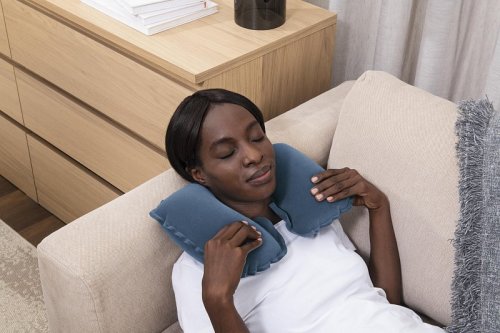 Nafukovací cestovný vankúšik v tvare podkovy má príjemný povrch a je ideálny na cestovanie do auta, autobusu alebo lietadla Vám spríjemní svojim tvarom cestu (tvarované pre pohodlnú podporu krčnej chrbtice) a nezaberie veľa miesta. .Materiál: PVC semiš – velvet soft. vankúšiku: 10 x 24 x 37 cm. Rozmery nenafúknutého vankúšika: 28 x 46 cm.