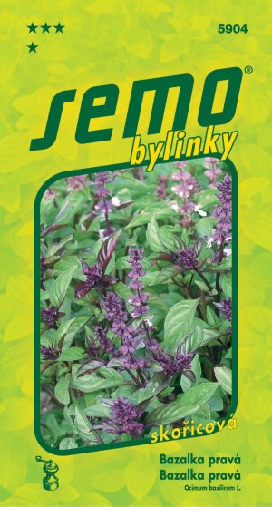 CINAMONETTE - škoricová - bazalková vôňa s nádychom škorice a anízu. Vhodná k jedlám, kde je žiadaná sladkastá vôňa. Dekoratívne rastlina s olivovo zelenými listami, purpurovými stonkami a ružovými kvetmi.