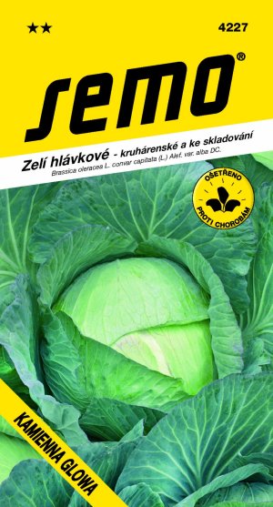 KAMIENNA GLOWA - univerzálna neskorá odroda bielej kapusty s veľmi dobrými chuťovými vlastnosťami. Obsahuje mnoho vitamínov, minerálnych látok, vlákniny a cukru potrebného na kvasenie. Vegetačná doba je 130 - 150 dní od výsevu. Guľovité hlávky dorastajú do váhy 3 – 6 kg. Veľmi vhodná odroda na priamy konzum, krúhanie aj skladovanie.