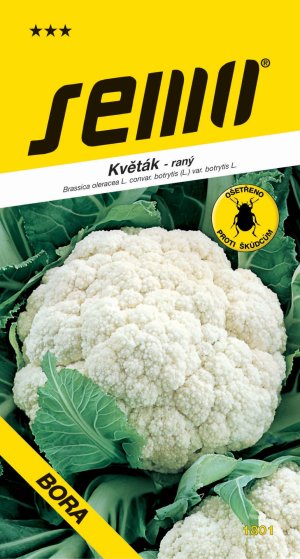 BORA (kód 1801) - veľmi skorá odroda pre najskoršie jarné poľné pestovanie zo sadby. Ružica je stredná, smotanovo biela, čiastočne zakrytá, s priemernou hmotnosťou 370 g. Je odolná proti fialoveniu, pri veľmi slnečnom počasí je potrebné vo vegetačnom období zalamovať listy, aby nedochádzalo k výraznému žltnutiu ružíc. Zberové obdobie je koniec mája až polovica júna. Vyžaduje intenzívnu závlahu za najväčšieho rastu a pred zberom. Vegetačná doba 104 - 112 dní.