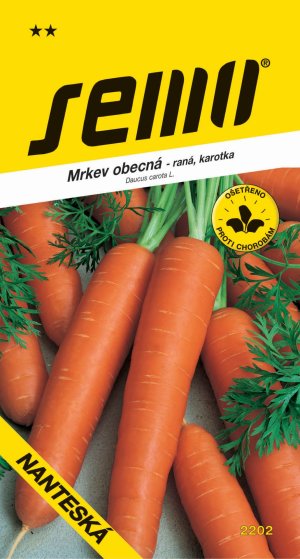 (Daucus carota L./Mrkva obyčajná pravá) Popis: Tradičná obľúbená odroda (predchádzajúci názov NANTESKÁ) ranej karotky s dlhším, takmer valcovitým koreňom, tupo ukončeným. Povrch je hladký, červenooranžový. Dužina je jemná, výbornej chuti, červenooranžová, často so svetlejším stredom. Plastická odroda pre skoré úrody. Zo 100 m2 možno zožať 290 - 310 kg koreňov. Vegetačná doba 115 - 125 dní.