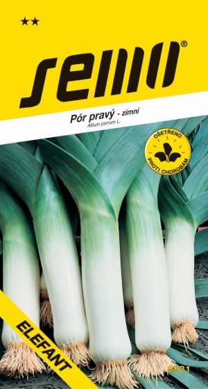 ELEFANT - rýchlo rastúce odroda vhodná na prezimovanie na poli a zber od skorej jari. Rastlina vysoká 65 - 85 cm má rozkladité, tmavo zelené, silne ojíněné listy. Konzumné časť stvolu je dlhá priemerne 10 cm, široká 3 - 6 cm, na priereze okrúhla, pevná. Dĺžku konzumnej časti môžeme predĺžiť prihrnutím stvolu. Vegetačná doba je 180 - 200 dní, zo 100 m2 možno získať 300 - 500 kg trhových rastlín podľa úrodného roka, pestovateľských podmienok. Zberáme postupne od októbra až do jarných mesiacov nasledujúceho roka.