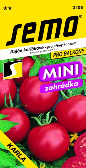 KARLA - stredne skorá odroda s veľmi kompaktným kríkom určená pre balkóny, parenisko, malé záhradky apod. Plody sú ploche guľovité, veľké, veľmi pevné s vynikajúcou farbou dužiny, s vysokým obsahom lycopenu. Odroda je vhodná pre samozásobenie a krátkodobé skladovanie (2 - 3 týždne). Ak je použitá na rezy, vyniká jej vysoko intenzívna červená farba dužiny. Je vhodná aj na výrobu domácich kečupov a pretlakov.