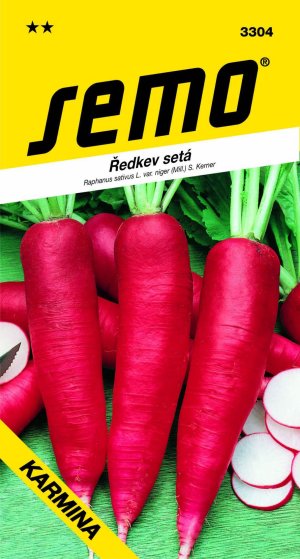 Karmin - kvalitné raná letná reďkev pretiahnutého tvaru s atraktívne sfarbenou buľvičky. Má stredne vzrastná rastlinu, buľvičky je pretiahnuto kužeľovitého tvaru s karmínovo červeným povrchom, tretinou vyčnievajúce z pôdy. Dužina je biela, jemná, takmer ředkvičkovité chuti. Je určená na priamy konzum a krátkodobé skladovanie (do 1 mesiaca). Odroda je odolná proti houbovitosti dužiny, pestovateľsky nenáročná.
