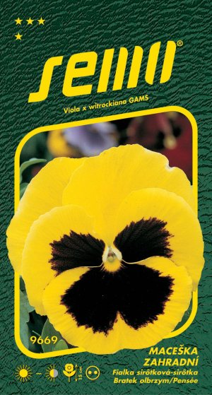 Veľké žlté kvety s tmavým okom, výška 15cm. Obľúbená dvojročná rastlina používaná pre skupinové záhonové výsadby. Vyhovujú ju slnečná i mierne zatienené stanovište, neznáša však sucho a úpal. Je citlivá na zaschnutie pri klíčení, výsev je nutné udržiavať stále vlhký.