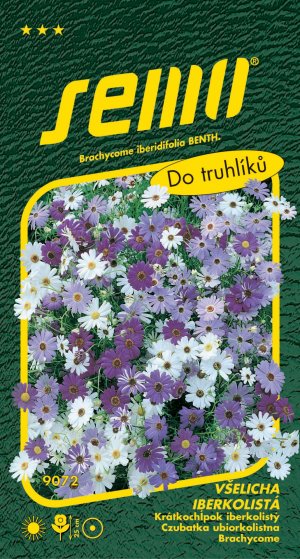 Rýchlo rastúce, kompaktný, bohato vetvená letnička s drobnými, hlboko členenými listami, pôvodom z Austrálie. Po celé leto vytrvalo kvitne, úbory modrých, ružových a bielych kvetov, výška 25cm. Je vhodná do kvetináčov, skaliek a na okraje záhonov. Na zálievku je všelicha nenáročná, vyžaduje plné slnka a ľahší, dobre priepustnú pôdu.