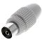 Koaxiálny konektor - zásuvka, priamy, biely plast-nikel, balenie visačka