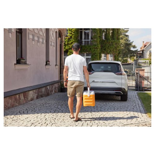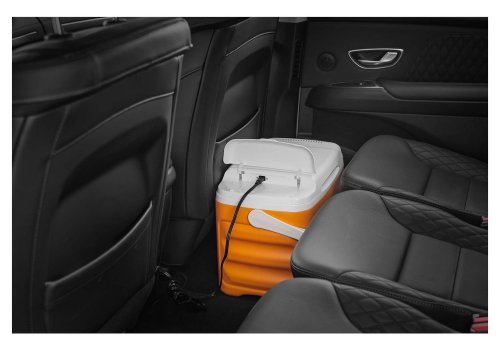 Disponujem super vnútornými aj vonkajšími rozmermi a pohodlne sa zmestím všade, kde chcete, aby som bola po ruke. Môj dlhý kábel dosiahne pohodlne ku každej 12V zásuvke. Veľká pevná rukoväť vám padne do ruky a keď ju zapriete o hranu na strede spodnej strany veka, poslúži ako vzpera, aby ste sa ľahko dostali k obsahu.