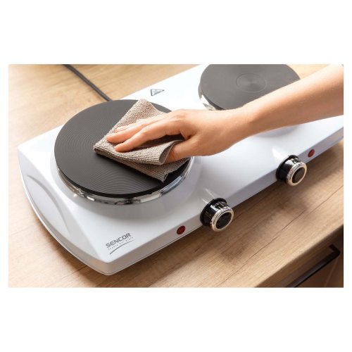 Mám dve platničky s priemerom 18 a 15 cm, takže na mňa umiestnite malé aj veľké hrnce a panvice. Naraz tak môžete pripraviť hlavné jedlo aj prílohu. Každá platnička je vybavená otočným gombíkom s plynulou reguláciou teploty a svetelnou kontrolkou.