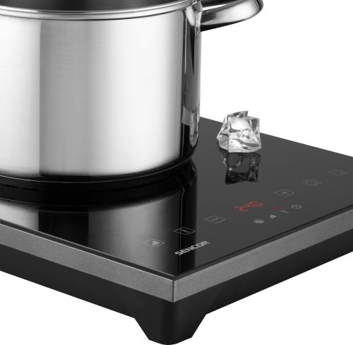 Sklokeramická indukčná varná doska je studená na dotyk, pretože teplo sa indukciou vytvára priamo v nádobe (pozor, doska sa môže čiastočne ohriať od varnej nádoby). Indukčné varenie šetrí čas (60 %) a elektrickú energiu (50 %). Má vysokú účinnosť (až 90%) a minimálne tepelné straty. Varič a jednotlivé funkcie ovládate dotykovými tlačidlami. O teplote a výkone vás informuje prehľadný veľký LCD displej s červeným podsvietením. Súvislá plocha sklokeramického povrchu kryje celú vrchnú stranu variča. Preto je ľahké udržiavať prístroj v čistote. A pretože sa teplo potrebné na varenie generuje v nádobe a varná plocha sa priamo nezahrieva (iba zvyškovým teplom z nádoby) to, čo nedopatrením opustí hrniec, sa k povrchu variča nenapečie. Mikroprocesorové riadenie prevádzky. Okamžitý prenos výkonu bez zdĺhavého rozohrievania. Vhodný pre priemery riadu od 12 do 26 cm. Automatická detekcia nádob na indukčné varenie (s magnetickým dnom). Možnosť voľby nastavenia teploty / výkonu. Regulácia teploty od 60 °C do 240 °C. 10 prednastavených stupňov ohrevu v rozsahu 200 – 2 000 W. Časovač na odklad vypnutia až o 180 minút. Tlačidlo ON/OFF pre zapnutie alebo prepnutie do pohotovostného režimu.