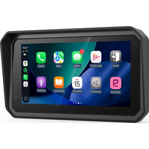 Bezdrôtové Android Auto a Apple CarPlay Bluetooth pripojenie hands-free do prilby 6" dotykový displej v HD rozlíšení Vodoodolnosť IP67