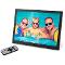 Digitálny fotorámik Displej 15,4" (39 cm) 16:9 TFT LED Vysoké rozlíšenie 1280 x 800 Pixels Čítačka kariet (SD/SDHC/MMC). USB 2.0 Reproduktor : 2X2W Menu MP4, AVI, MKV, MOV, RMVB Audioformáty: MP3, FLAC, APE Formáty fotografií: JPG, PNG, BMP Postupné premietanie fotografií Nastaviteľný interval premietania Automatické prehrávanie videí/fotografií/hudby Kalendár/hodiny/alarm/časovač Nastaviteľný jas Diaľkové ovládanie Slúchadlový konektor Stojanček Sieťový adaptér 100-240 V /12V 1,5 A (v dodávke) Rozmery: 362x244x26mm (šxvxh) Hmotnosť: 1,5 kg