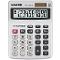 Stolová kalkulačka Veľký 10-miestny LCD displej Výpočet odmocniny Výpočet percent Štvortlačidlová nezávislá pamäť Označenie poriadku-trojčíslicové čiarky Tlačidlo zmeny znamienka Kovový štítok pre väčšiu odolnosť Automatické vypnutie Duálne napájanie (1xLR41) Rozmery: 131x100x26 mm (